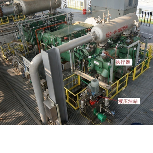 氣量無級調(diào)節(jié)系統(tǒng)與壓縮機(jī)原有的DCS通過接口可以相互通訊,具有良好的兼容性。因此,它既能獨(dú)立于壓縮機(jī)原有的DCS單獨(dú)運(yùn)行,也可以與原DCS兼容并行,使壓縮機(jī)安全、穩(wěn)定和高效運(yùn)行。HRCS系統(tǒng)是基于部分行程頂開進(jìn)氣閥原理的無級調(diào)節(jié)系統(tǒng),可以實(shí)現(xiàn)排氣量0-100%范圍內(nèi)無級調(diào)節(jié)。電-液伺服執(zhí)行機(jī)構(gòu)根據(jù)控制模塊輸出的信號控制進(jìn)氣閥的開和關(guān)。通過控制進(jìn)氣閥的關(guān)閉時(shí)刻可以調(diào)節(jié)每個(gè)壓縮行程實(shí)際壓縮的氣量,達(dá)到調(diào)節(jié)排氣量的目的。HRCS系統(tǒng)主要包括機(jī)械執(zhí)行機(jī)構(gòu)、液壓系統(tǒng)和控制系統(tǒng)三大部分。